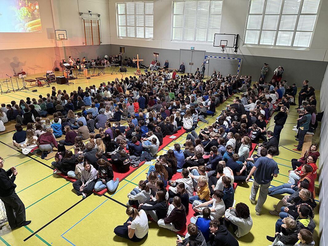 Die dargebrachte Dankbarkeit wurde eindrücklich untermauert durch das Lied "Good, Good Father", das von zwei Schülerinnen aus der neunten Klasse vorgetragen wurde. Ihre musikalische Darbietung schuf einen Moment der Besinnung und der Verbundenheit im Glauben für die gesamte Gemeinschaft. Die anschließende Fürbitte wurde von der Klasse 6a vorgetragen, bevor das gemeinsame Vaterunser gebetet wurde.